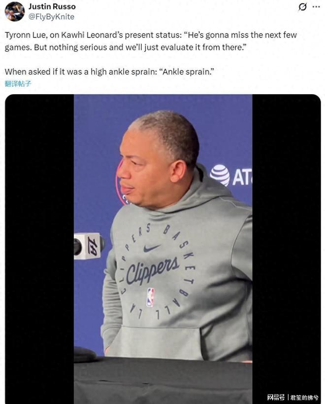 伦纳德的脚踝伤势让球迷们心慌,主教练泰伦卢更是在发布会上直接开炮,矛头直指球队的防守问题。